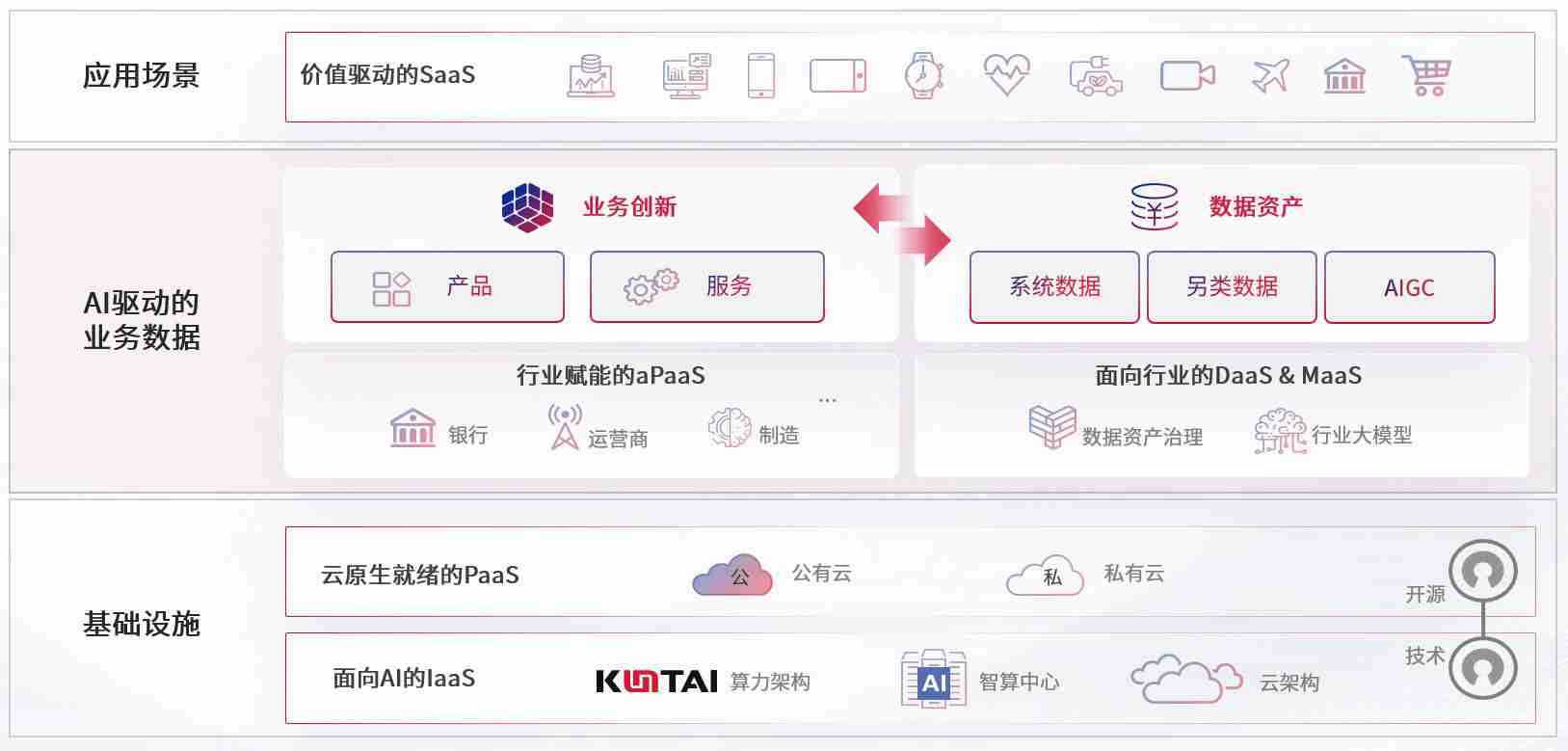 数字时代,,,,围绕企业数字化转型的关键要素,,,3118云顶集团数码开创性的提出数云融合战略和技术体系框架,,,着力在云原生、、、、数字原生、、、AI原生和信创产业上架构产品和服务能力,,为处在不同数字化转型阶段的快消零售、、汽车、、金融、、医疗、、政企、、、教育、、、、运营商等行业客户提供泛在的敏捷IT能力和融合的数据驱动能力,,,构建跨界融合创新的数字业务场景和新业务模式,,,助力企业级客户建立面向未来的核心能力和竞争优势,,,,全面推动社会的数字化、、、、智能化转型升级。。。